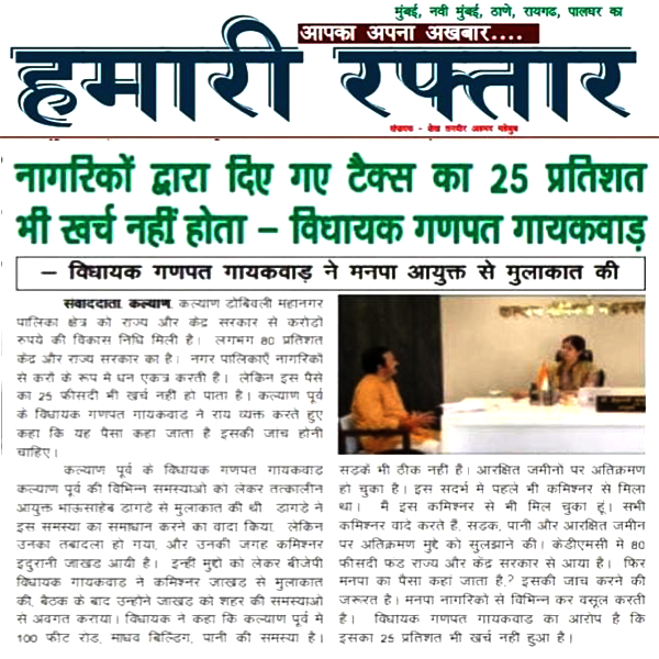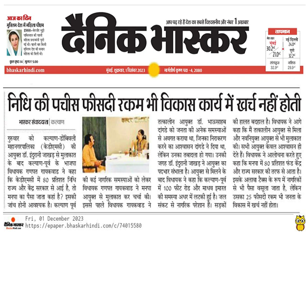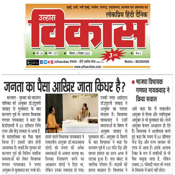 राज्य सरकारने व मा. मुख्यमंत्री नामदार श्री देवेंद्रजी फडणवीस साहेब यांनी मला कल्याण पूर्व विधानसभेच्या विकासासाठी करोडो रुपयांचा निधी उपलब्ध करून दिलेला आहे व या निधीच्या माध्यमातून मी कल्याण पूर्व विधानसभा क्षेत्रामध्ये अनेक लोकोपयोगी विकास कामे केली आहेत व करत आहे शिवाय सामाजिक शैक्षणिक कला क्रीडा व आरोग्य विषयक अनेक उपक्रम यशस्वी करण्यात आले असून माझ्या मतदारसंघाच्या संपूर्ण व सर्वांगीण विकासाकरिता अनेक लोकोपयोगी अशा विकासकामांचे नियोजन सुरू आहे.